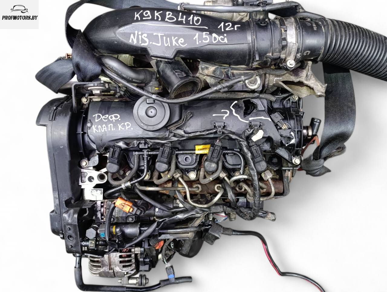 Из Франции, в рабочем состоянии, маркировка двигателя K9KB410, дефект клапанной крышки при перевозке, стоимость указана за двигатель без навесного оборудования (СТОЛБ), стоимость за комплектный двигатель (без КПП, стартера) уточняйте, гарантия